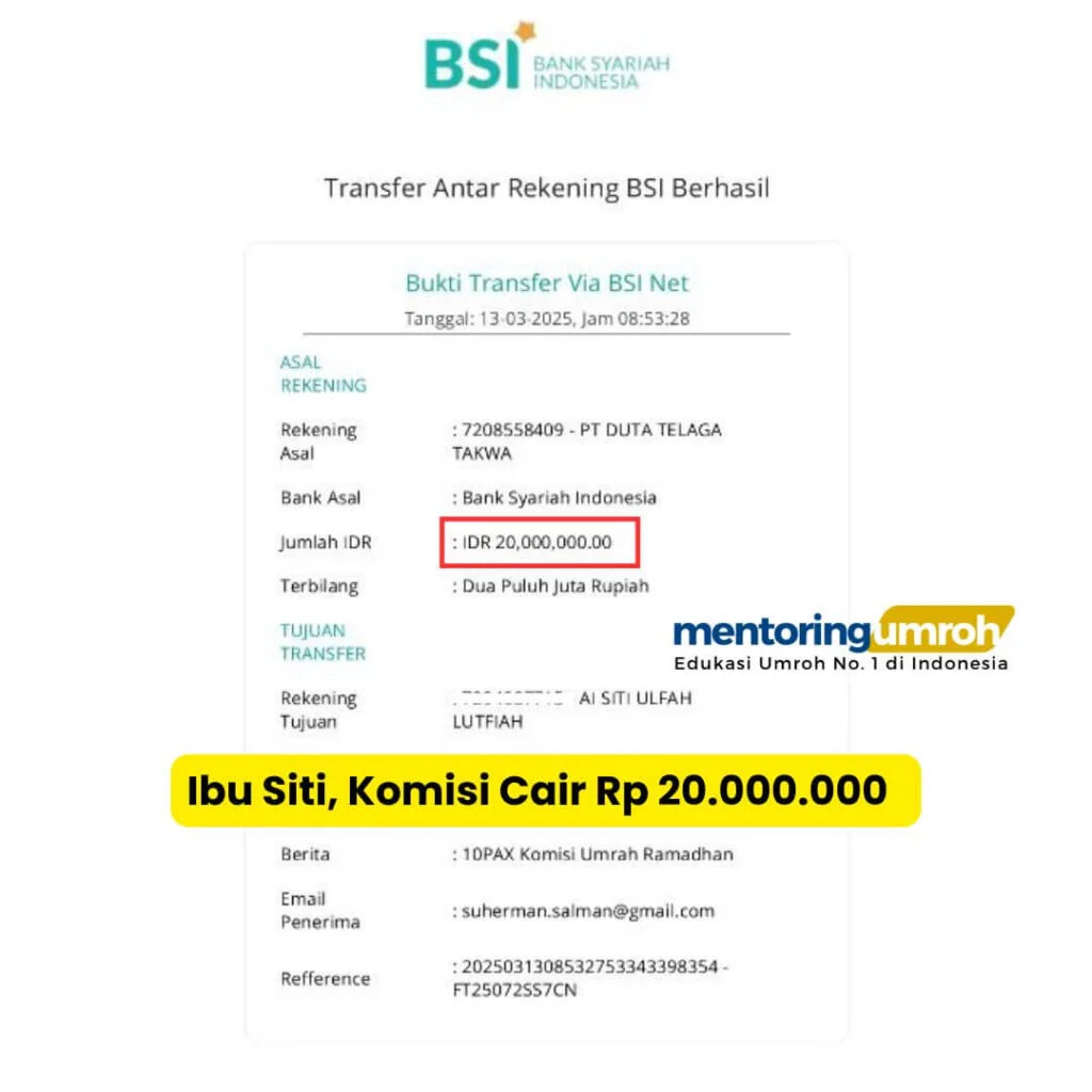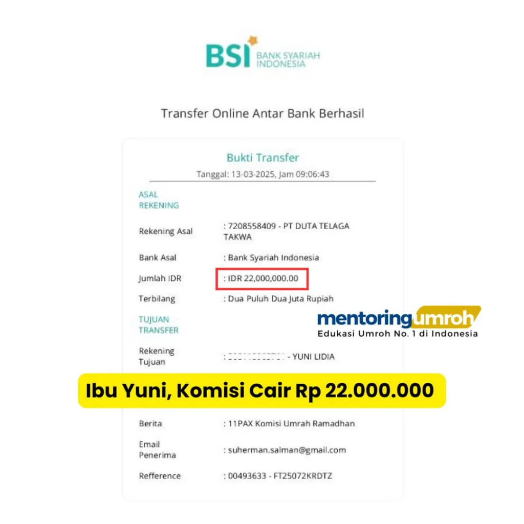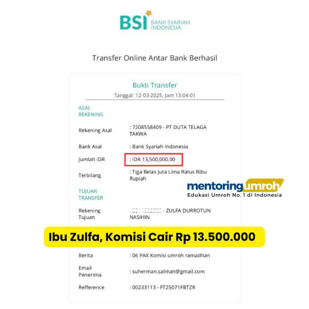 Buktinya? Simak Bukti Transfer Komisi Marketing Freelance Umroh :