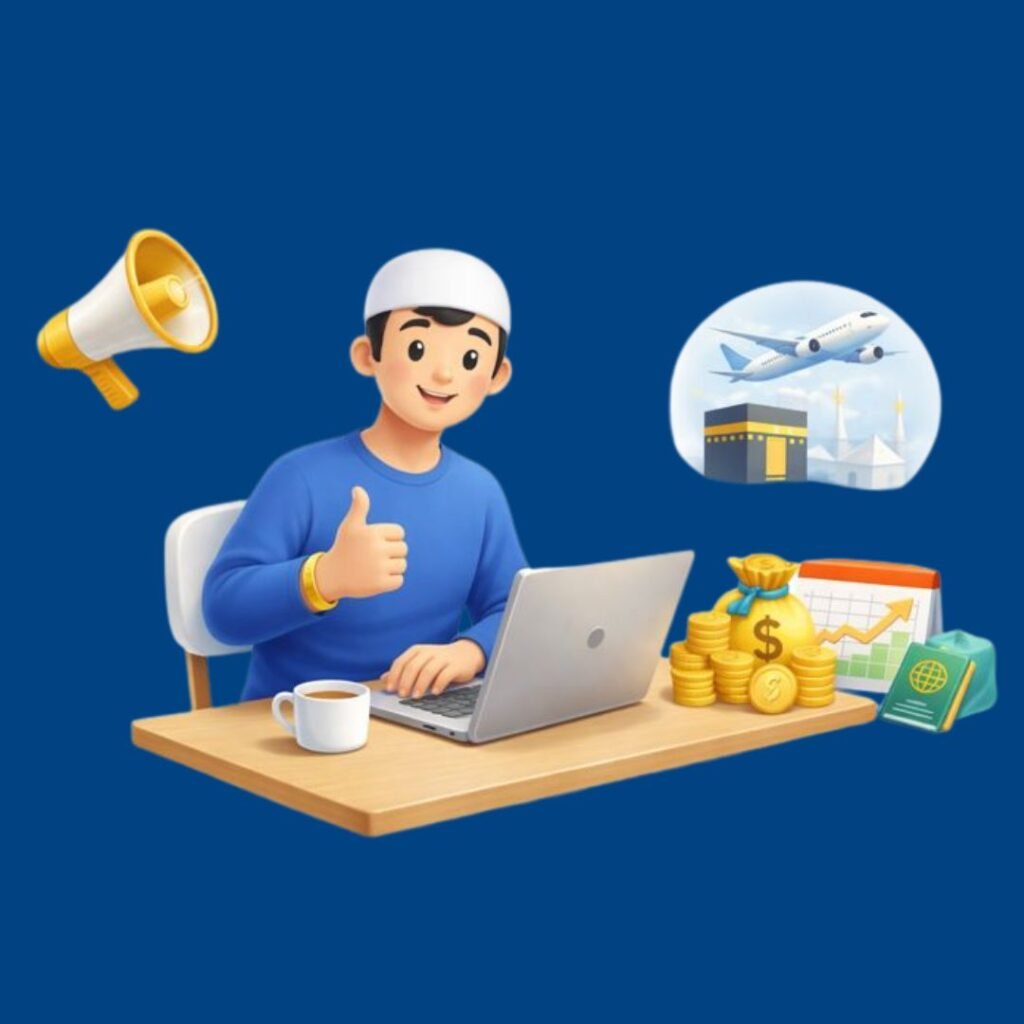 Sejak akhir 2023, kami hadir untuk membantu siapa pun, bahkan yang belum pernah jualan sama sekali, menjadi wasilah keberangkatan Umroh & Haji yang menghasilkan